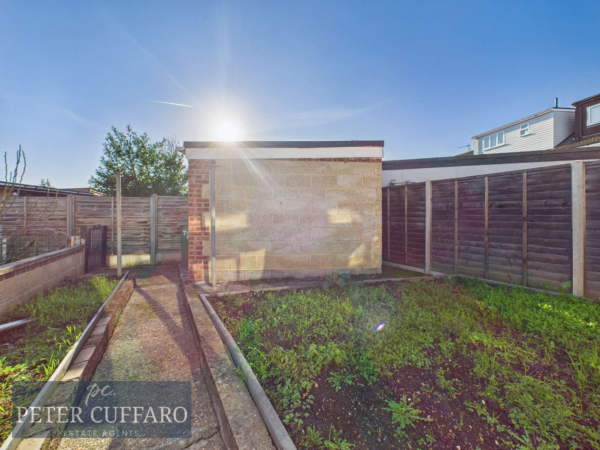 The rear garden is a blank canvas, ready to make it your own, with a brick built shed, ideal for storage or as a home office.